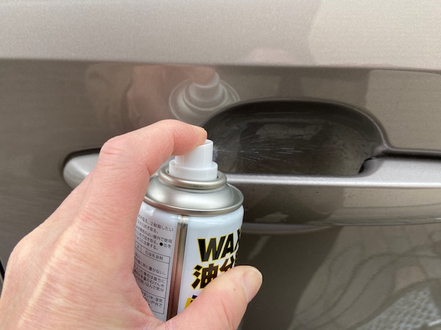 ドアハンドルプロテクターと同じく、貼付け面の汚れを清掃し、シリコンオフスプレーで脱脂します。
