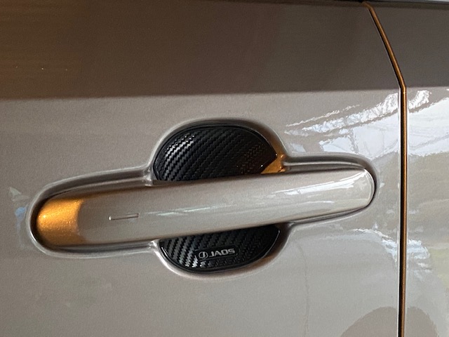 しかし、娘の成人式で美容院に行った時、JAOSのカーボン調 ドアハンドプロテクターを付けたランクル250を見て「カッコイイ〜じゃん」と感じ、付けちゃいました。