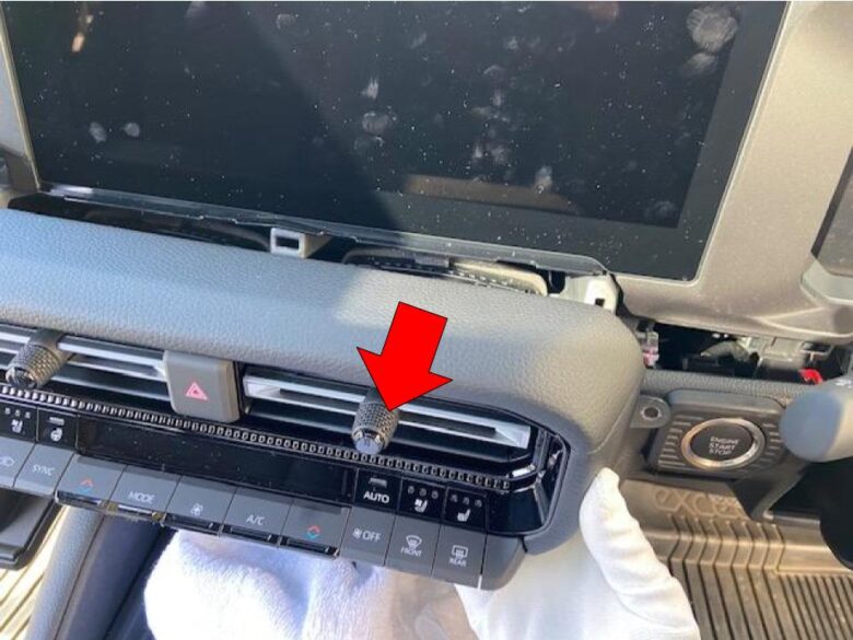 写真が取れなかったのでエアコンインパネガーニッシュが外れた状態で説明します。