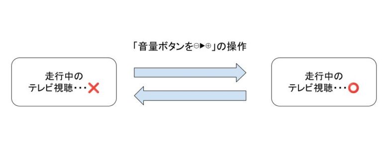 - OFFスタート(工場出荷時)・・・走行中にテレビ視聴ができない。(音声のみ)