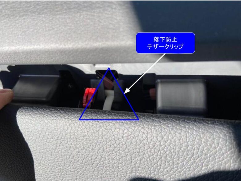 落下防止テザークリップがあるので、エアコンインパネガーニッシュのクリップかんごうのみ外します。