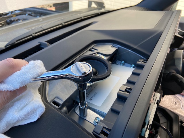 センタースピカーを外すと作業がやりやすくなります。