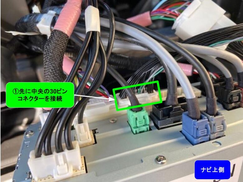 - 取付方法はナビのコネクターへ製品コネクターを割り込ませて接続。