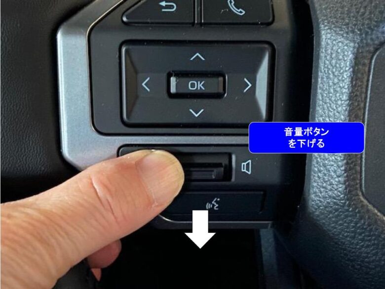 ステアリングスイッチの「音量ボタン⊖」を押しながら、イグニッションスイッチをONにすると、モードが切り替わります。