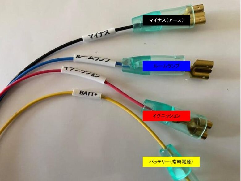 - 黄配線→バッテリー(常時電源)プラス