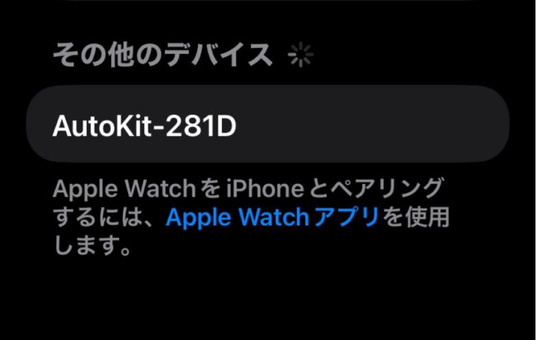 iPhoneの「設定」→「Bluetooth」→AutoKit-281Dをタップしてペアリングします。ペアリングするとCarPlayをワイヤレスで使用できます。