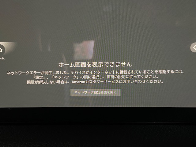 HDMI CINEMAをタップしてFire TV Stickの画面にします。Fire TV Stickの画面になり「ホーム画面を表示できません」が表示されます。