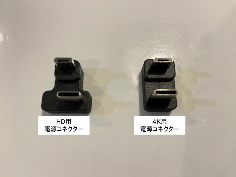 Fire TV Stick、HD用と4K用の2種類の電源コネクターが同封してあります。使用するFire TV Stickに合わせて取り付けてください。