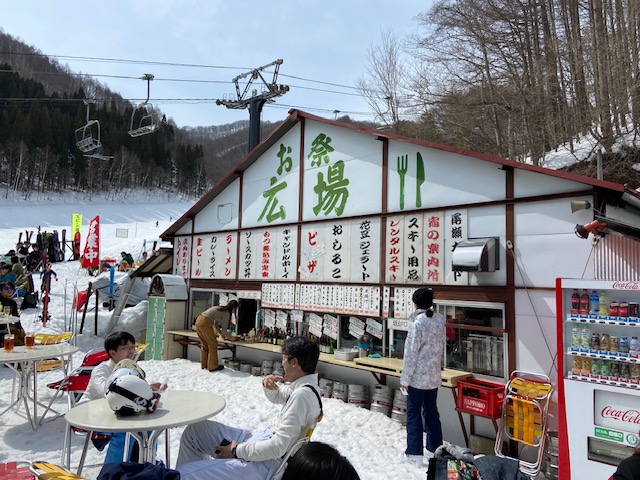 ゲレンデには「お祭広場」と命名されたお食事処があり、お酒好きにもおすすめなスキー場なんです。