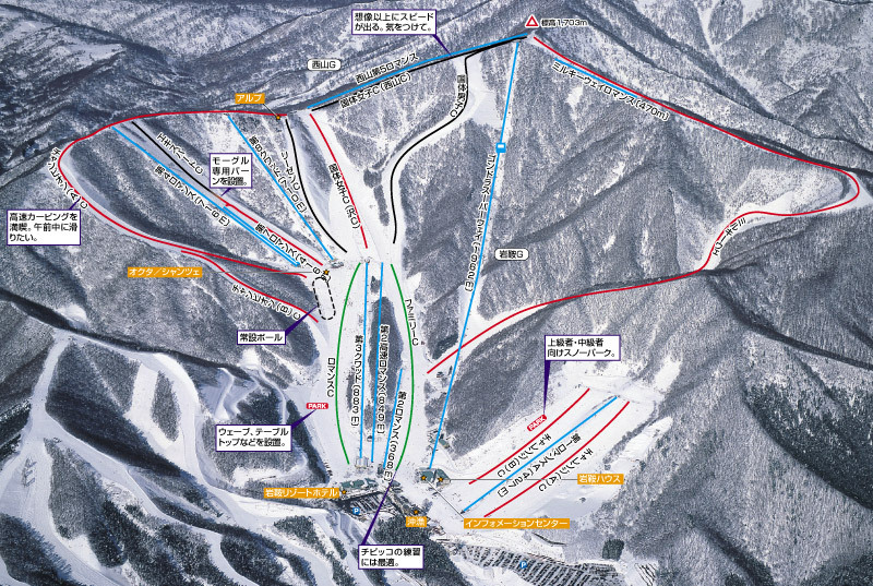 初級~上級向けまでの18本のコースからなり、リフト11基、その他各種設備も完備された施設です。