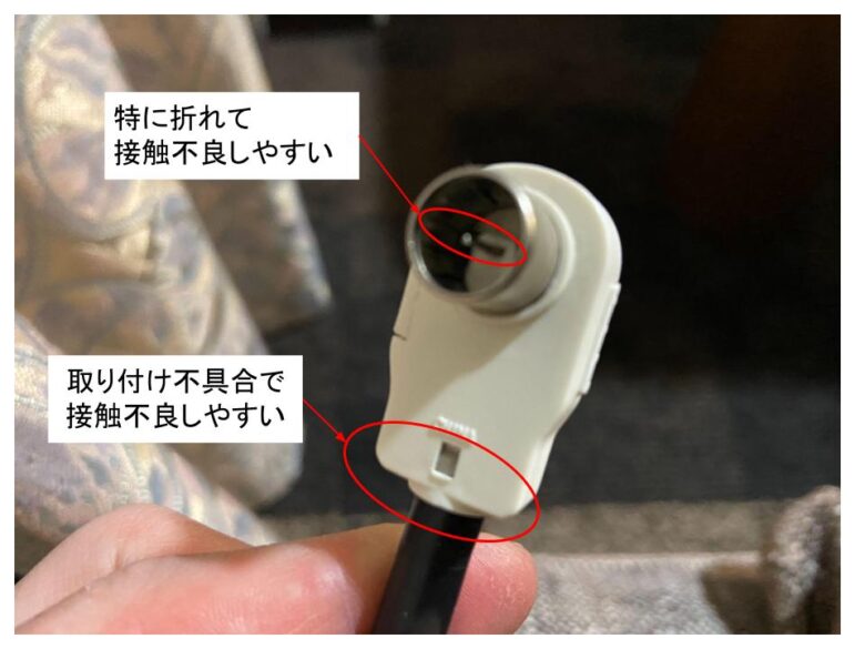 差し込み口とコードの取り付け口が接触不良を起こしやすいです。
