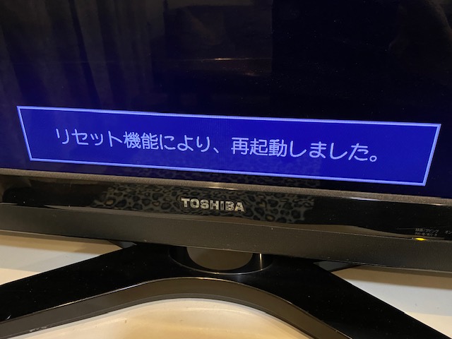 - しばらくすると電源が入り、画面に「リセット機能により、再起動しました」と表示されリセットされるので映るか確認してください。