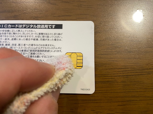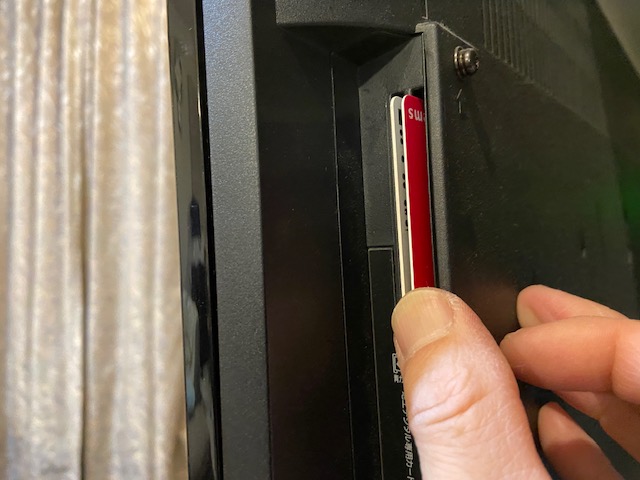 ①本体の電源切ってからB-CASカードを抜きます。