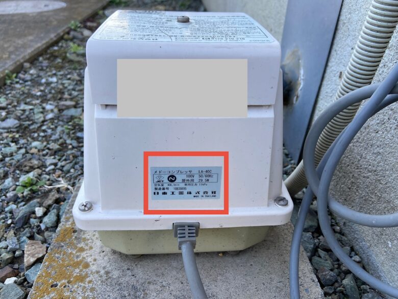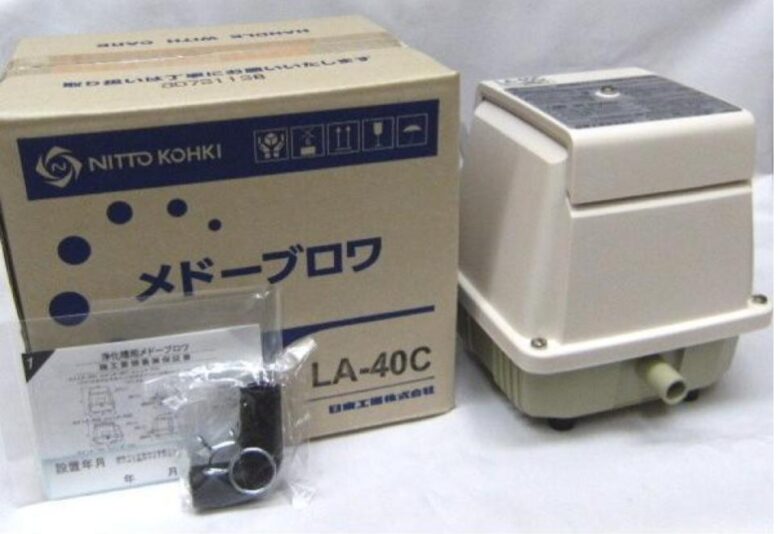 しかし、ブロワの形と必要吐出風量を浄化槽仕様書で確認し、日東工器のブロワを購入しました。