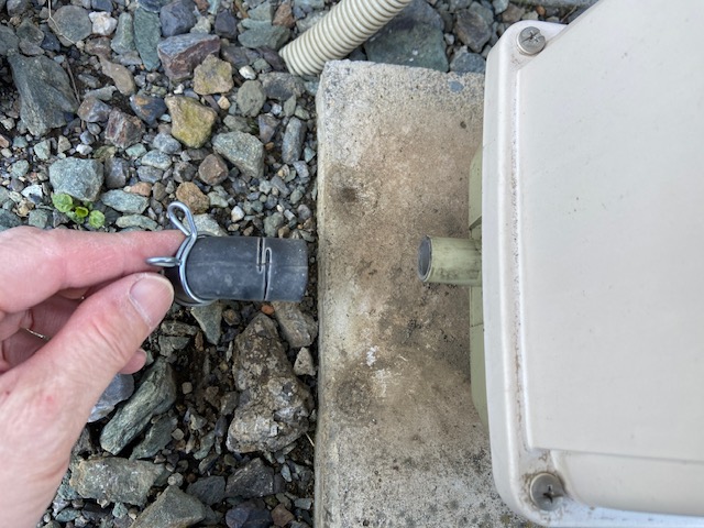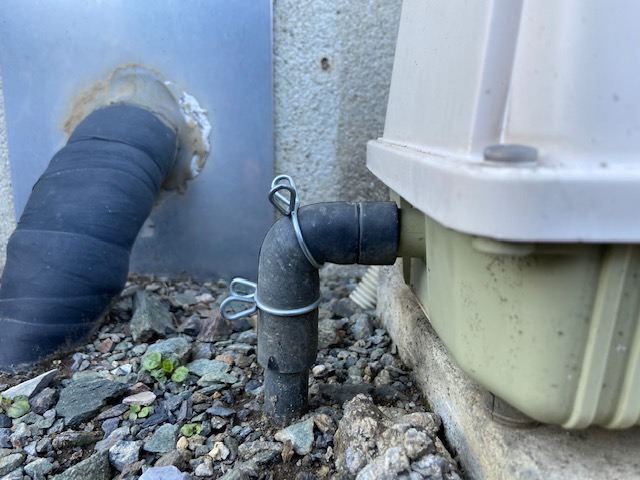 ブロワと浄化槽の空気供給口をL型ホースで接続